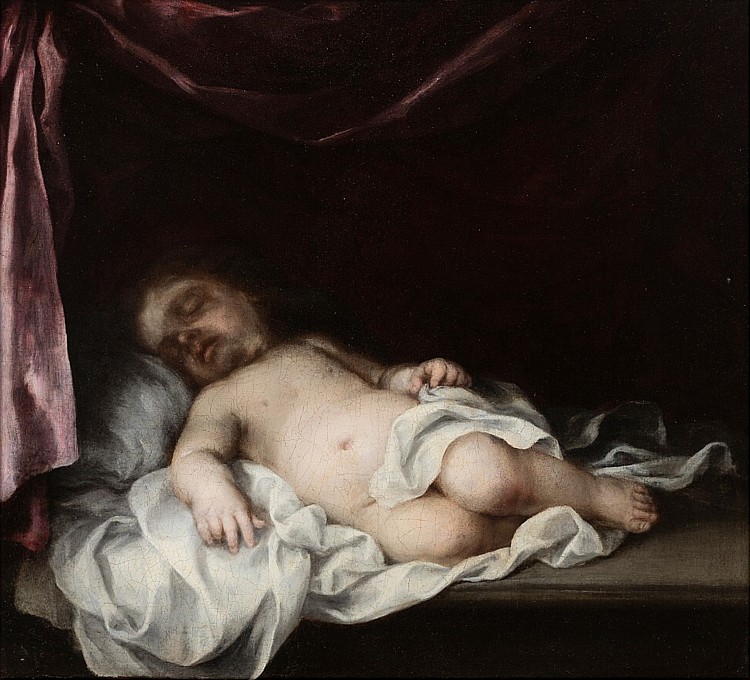 Precisamente, la Sala Setdart subasta el próximo 20 de noviembre otra pieza del círculo de Pedro Roldán, sin autoría propuesta, una talla en madera policromada de un santo sin identificar que mide 132 cm de altura, representado barbado, vestido con hábito, con la mano derecha alzada y originalmente portando un báculo u otro objeto. Dicha pieza pertenecía a una colección privada española, al igual que un interesante Niño Jesús dormido atribuido a Bartolomé Esteban Murillo, delicada representación infantil, impregnada del lirismo y la ternura característicos del pintor sevillano, que ha permanecido durante décadas en el anonimato dentro de colecciones privadas, hasta hoy. |