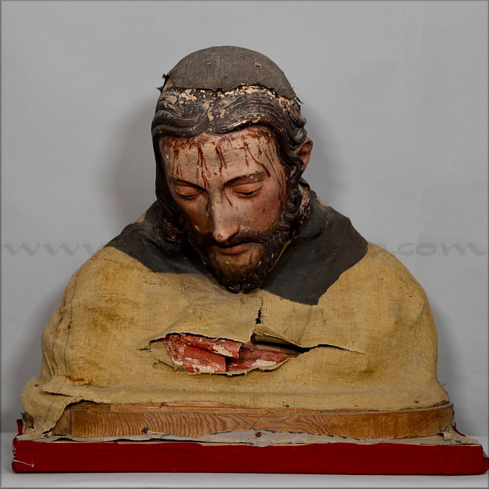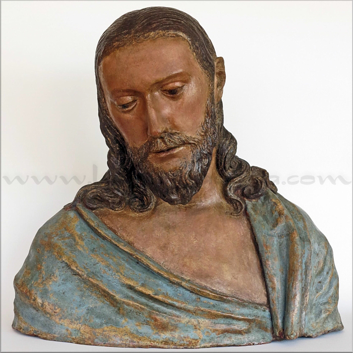 Una tipología escultórica excepcional y su reinterpretación sevillana: del Cristo Resucitado al Ecce Homo Se trata de una escultura realizada en barro cocido policromado, un material de gran fragilidad y elevada complejidad técnica, circunstancia que hace imprescindible la realización de un estudio exhaustivo previo a cualquier actuación directa sobre la obra. El busto del Ecce Homo de La Campana se inscribe dentro de una tipología escultórica excepcional y poco frecuente, correspondiente a bustos de medio cuerpo en terracota policromada, cuyo origen iconográfico, en el contexto del Renacimiento italiano, se vincula a la representación del Cristo Resucitado. |