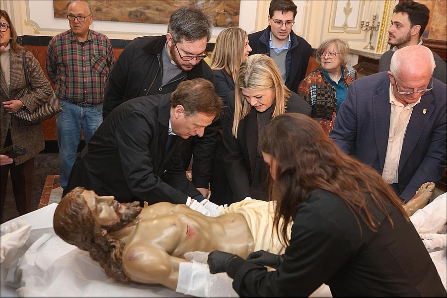 La Conselleria de Educación, Cultura y Universidades de la Generalitat de València ha devuelto la imagen del Cristo Yacente a la iglesia de San Jorge Mártir de Paiporta tras su restauración por el Institut Valencià de Conservació, Restauración i Investigació (IVCR+i). La imagen se vio afectada por la dana de octubre de 2024. Estos trabajos de recuperación se enmarcan en la segunda fase de la intervención sobre el patrimonio escultórico afectado por la dana de 2024 desarrollados por el IVCR+i. El retorno del Cristo Yacente, coincidiendo con la Semana Santa, simboliza la recuperación material y emocional de una obra profundamente arraigada en la identidad de Paiporta. En el momento de su recepción en el IVCR+i el 25 de julio de 2025, la obra presentaba un estado que reflejaba claramente los efectos del desastre natural: completamente cubierta por una densa capa de lodo y suciedad, con grandes acumulaciones en pliegues y cavidades. La estructura de madera, sin embargo, apenas evidenciaba daños, salvo una pequeña pérdida volumétrica en una falange de la mano derecha. También se detectaron pequeñas pérdidas puntuales de película pictórica y un área de descohesión del estrato pictórico en el muslo derecho. La intervención de esta talla en madera policromada, obra anónima valenciana de la década de 1940, comenzó con una exhaustiva documentación fotográfica y estudios fisicoquímicos para conocer los materiales constitutivos de la escultura. Además, se realizó un escaneado 3D antes y después de la restauración. |