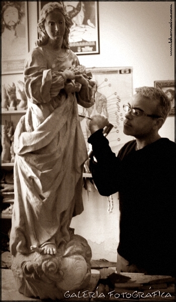 Se trata de una efigie en talla completa que representa la Inmaculada Concepción. Este proyecto escultórico fue el ganador del concurso convocado en febrero de 2013 por el Ayuntamiento de La Vall d'Alcala (Alicante) para reponer la desaparecida imagen de la patrona del municipio, que se encontraba al culto antes de la Guerra Civil en el templo que recibe su nombre. Dicho templo se encuentra en restauración, así como el retablo y el camarín de la Inmaculada, del cual el artista torrevejense se sirvió para averiguar la escala de la obra. El concurso recogió el trabajo de ocho escultores de toda España. El boceto elegido se ha materializado en una escultura de 130 cm de altura, inspirada, como suele ser habitual en su autor, en las obras dieciochescas del barroco valenciano. Labrada en madera policromada, dorada y estofada, la Señora muestra una disposición murillesca, con las manos unidas al lado izquierdo, la cabeza inclinada hacia la derecha, el rostro aniñado y el manto sobre el hombro izquierdo, cruzando transversalmente la túnica para girar al lado derecho. |