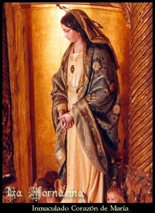 La hornacina central del retablo del Convento de las Hermanas de la Cruz da cobijo a esta imagen, inmersa en el modelo iconográfico de la Tota Pulchra. Procede de la localidad sevillana de Écija, concretamente de la finca denominada El Muño, propiedad del entonces Marqués de Santaella y Arienzo. Es una efigie de bulto redondo que podemos situar en el siglo XIX. En su peana se acoplan dos ángeles exentos que proceden de una pieza anterior.