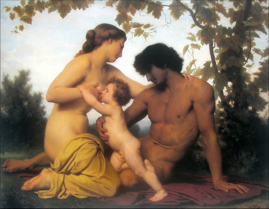 Esta obra ejemplifica otro de los aspectos de la pintura de Bouguereau: la fidelidad a la antigua Grecia, visible no solamente a lo largo de su trayectoria en los temas mitológicos. Expuesta en el salón de París de 1867, fue adquirida en el año 2010 por Juan Antonio Pérez Simón, asturiano afincado en México, para su colección particular, hoy gestionada por la Fundación Colección Pérez Simón. Con La Edad de Oro (óleo sobre lienzo, 81,5 x 100,5 cm) el pintor francés, como bien apreció el estudioso Emilio Gutiérrez Quintanilla, plasma la verdadera belleza a través de dicha fidelidad, conservada en general con amor por la humanidad. El resultado es una alegoría con la que Bouguereau desleña el fuego viviente y la hermosura de la naturaleza, en la obsesión de un grequismo meramente arcaico. Aunque Gutiérrez Quintanilla consideró a Bouguereau como un artista de gran talento y correcto dibujo, también decía de él que pasaba de las ninfas al cristianismo de una manera inconsciente y diáfana que parecía revelar cómo su inspiración, siempre velada entre nébulas, carecía de radiante vigor y entonación robusta. Independientemente de lo anterior, La Edad de Oro constituye una bella alegoría que fusiona los aludidos temas (paisaje, ninfas y cristianismo, pues hay ecos a la Sagrada Familia y a la virtud teologal de la Caridad) junto con una enésima exaltación del esplendor de la naturaleza humana por parte de Bouguereau; de hecho, el propio título (L'age d'or en francés) alude a la utopía griega que habla del estado ideal de la humanidad, no solo a nivel físico y emocional, sino también en lo que concierne a la armonía, paz y felicidad. |