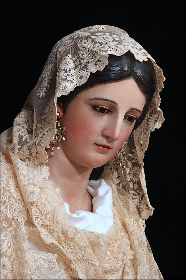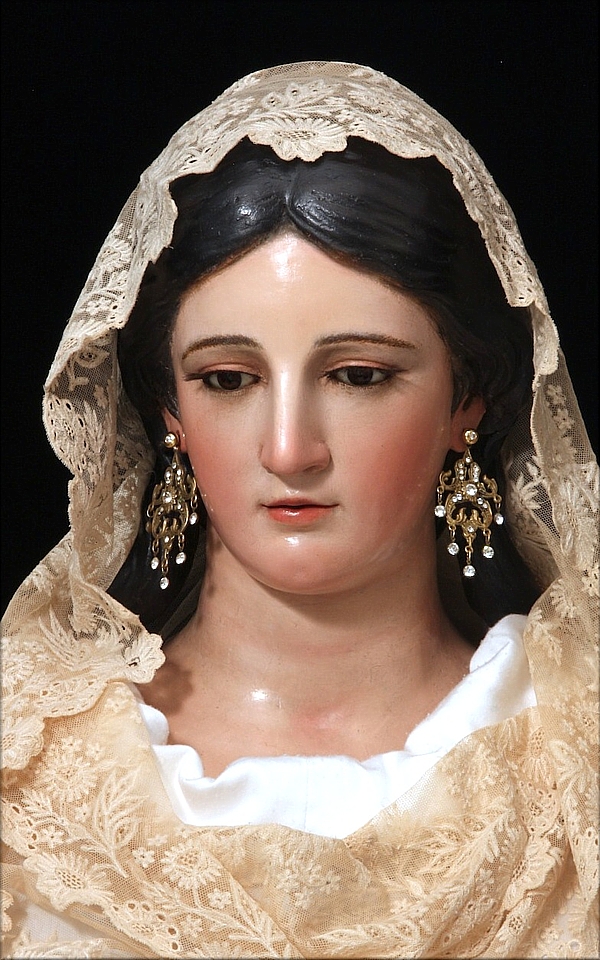Respecto a los vínculos académicos de Fernández Guerrero, mencionar que el 1 de septiembre de 1788 se matriculó en la Real Academia de Bellas Artes de San Fernando de Madrid, donde se examinó de escultura, tras lo cual obtuvo el nombramiento de académico supernumerario, lo que nos revela que también durante la década de 1780 debió formarse como escultor junto a algún artista de la ciudad. Un año más tarde, en 1789, el conde Alexander O'Reilly, gobernador de Cádiz y uno de los impulsores de la Escuela de las Tres Nobles Artes de la ciudad, le nombró su teniente director de la sección de Escultura. De gran academicismo es la venerada imagen de la Divina Pastora de Capuchinos, titular de la hermandad homónima de Sevilla, que Fernández Guerrero talló en 1802 para reemplazar a una obra anterior, hoy desaparecida, labrada por Cristóbal Ramos, autor del Divino Pastorcito (Buen Pastor Niño) que la acompaña llevando un cordero sobre sus hombros. En opinión de Félix González de León, Fernández Guerrero copió a la Venus de Médici. La imagen mariana aparece sedente y vestida con atuendo pastoril, siguiendo la iconografía impuesta por Fray Isidoro de Sevilla. Cobijada bajo un granado, sostiene un báculo en la mano izquierda, mientras la derecha apacienta a un cordero, símbolo de las almas cristianas que acuden a su cuidado. La restauración llevada a cabo en 2012 por el artista sevillano Fernando Aguado proporcionó abundante información sobre la escultura. Sus trabajos se centraron fundamentalmente en el estrato pictórico, muy afectado por los repintes. Y es que la imagen mariana fue repolicromada en la mayor parte del rostro, y al completo en las manos y el cuello, por Sebastián Santos en la década de 1950, y por Francisco Buiza en 1982. Al eliminar Aguado las repolicromías aplicadas -a excepción de la cuello realizada por Buiza, que sí se mantenía estable en su tonalidad- se recuperó el color original nacarado de la imagen. La intervención de Aguado se extendió al Divino Pastorcito (Buen Pastor Niño) de Ramos y al cordero, obra también de Sebastián Santos -autor de los pies de la Virgen, según información facilitada por la Hermandad de la Divina Pastora de Capuchinos-, quien tuvo como referente a esta talla de Fernández Guerrero para sus numerosas versiones sobre el tema. |
