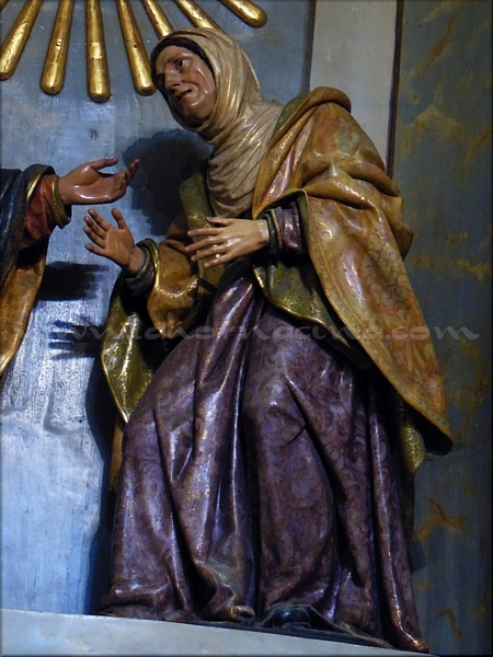 Visitación de María a Isabel Espléndido grupo escultórico de hacia 1621-1622 atribuido a Martínez Montañés. El experto Hernández Díaz, acerca de la imagen mariana, consideraba que era hermosa y de indudable entronque montañesino, relacionable con las esculturas del retablo del convento hispalense de San Leandro y por tanto situada en el taller. Ambas figuras muestran gran expresividad realista, hermosa apostura y una representación cercana a las fórmulas empleadas por Montañés, como lo han advertido otros historiadores como Schenone y los Mesa-Gisbert. |